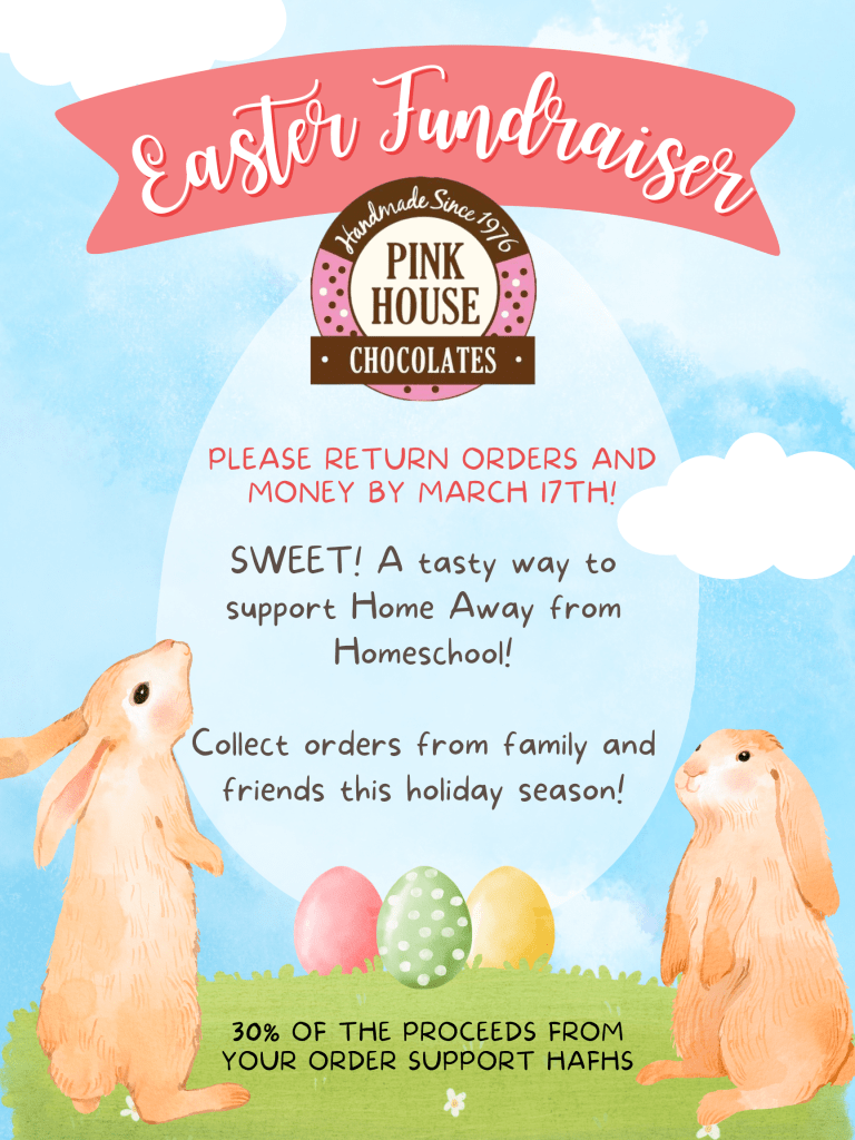 With the support of generous sponsors like you, we raised $210 in our Moe’s Southwest Fundraiser. Thank you! This holiday season, we will be partnering with Pink House Chocolates for an Easter Fundraiser! HAFHS will receive 30% of the proceeds from the total purchase.