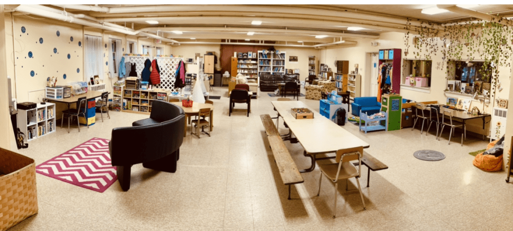 - Small play space/social area for parents and younger siblings